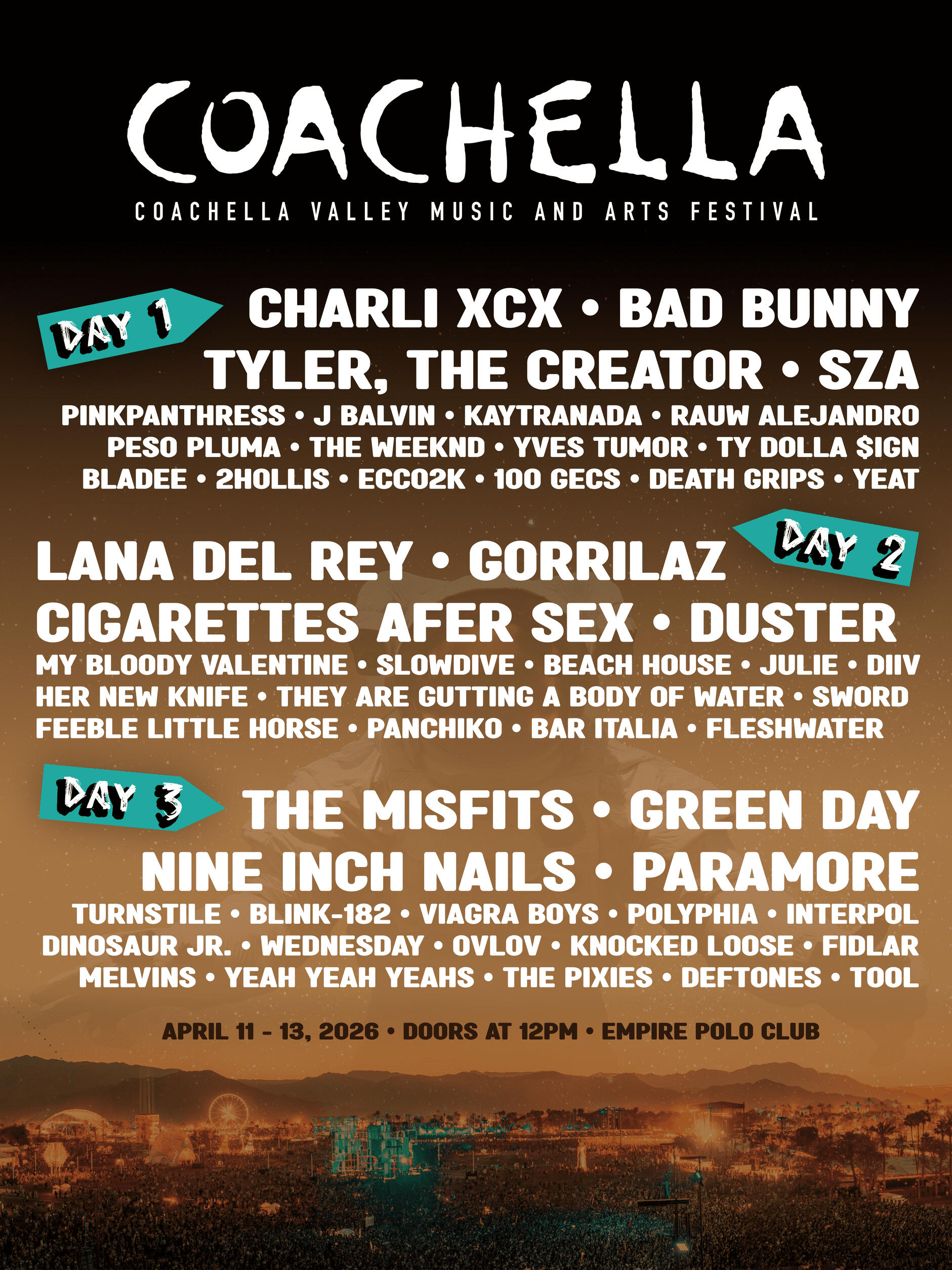 This poster was designed for a conceptual 2026 edition of Coachella, one of the most iconic music and arts festivals in the world. The goal was to capture the event’s immersive and expansive atmosphere through a bold, modern layout and a vibrant, sunset-inspired color palette. A backdrop of gradient tones reflects the desert sky at golden hour, setting the stage for the lineup while evoking the warmth and energy of the festival experience.The artist lineup is arranged with clear typographic hierarchy to highlight headliners while maintaining balance across secondary acts. The layout uses stylized day markers, thoughtful spacing, and subtle graphic accents to guide the viewer’s eye and organize the information without overwhelming it. Visual elements like the desert silhouette and layered text contribute to the sense of scale and location, grounding the design in Coachella’s unique identity.