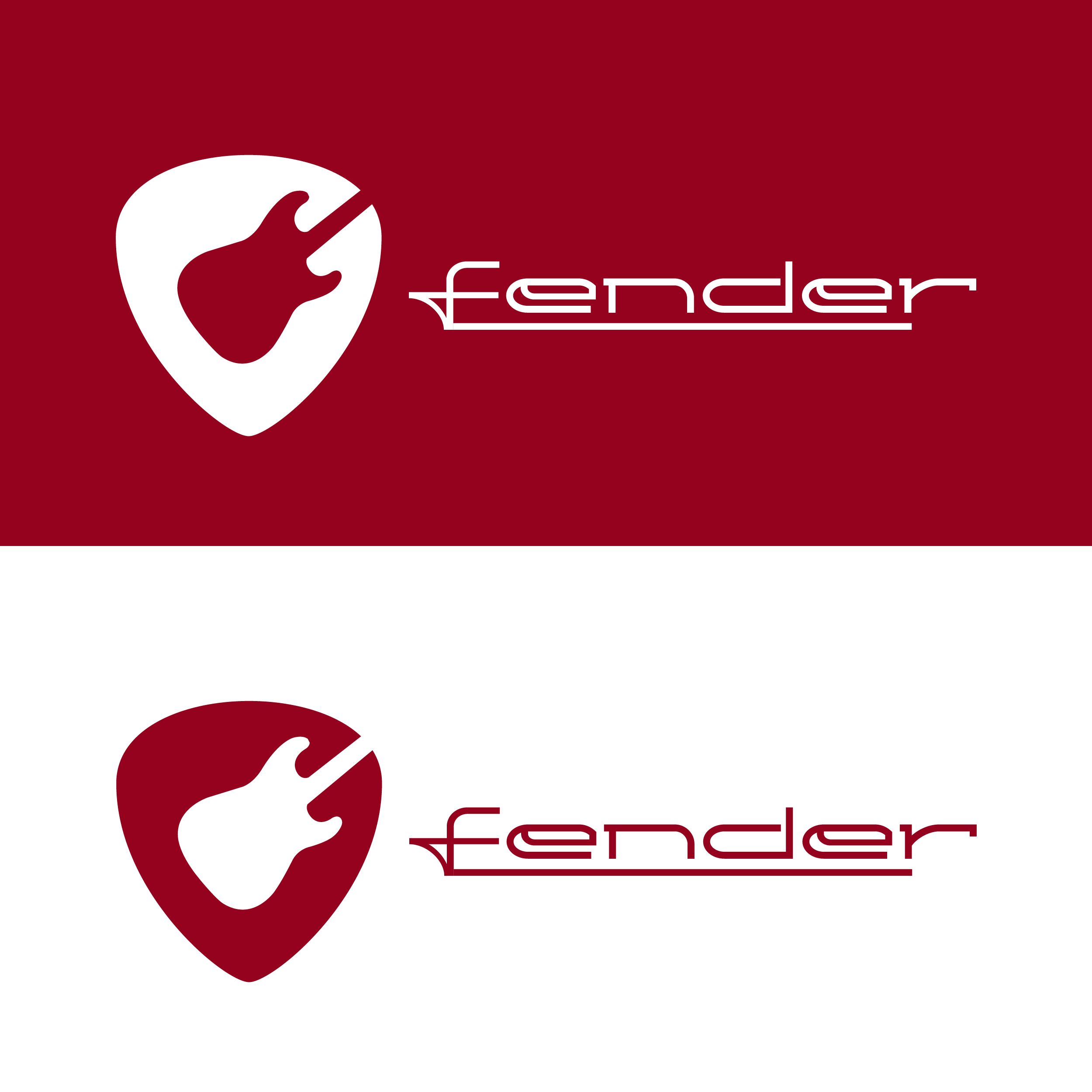 This modernized logo reimagines Fender for a younger, style-conscious audience. The classic guitar silhouette is placed inside a bold, simplified pick shape for instant recognition, while the custom typeface adds a sleek, contemporary edge. The clean lines and deep red palette balance retro roots with a fresh, digital-era vibe—giving the brand a bold new voice without losing its rock heritage.