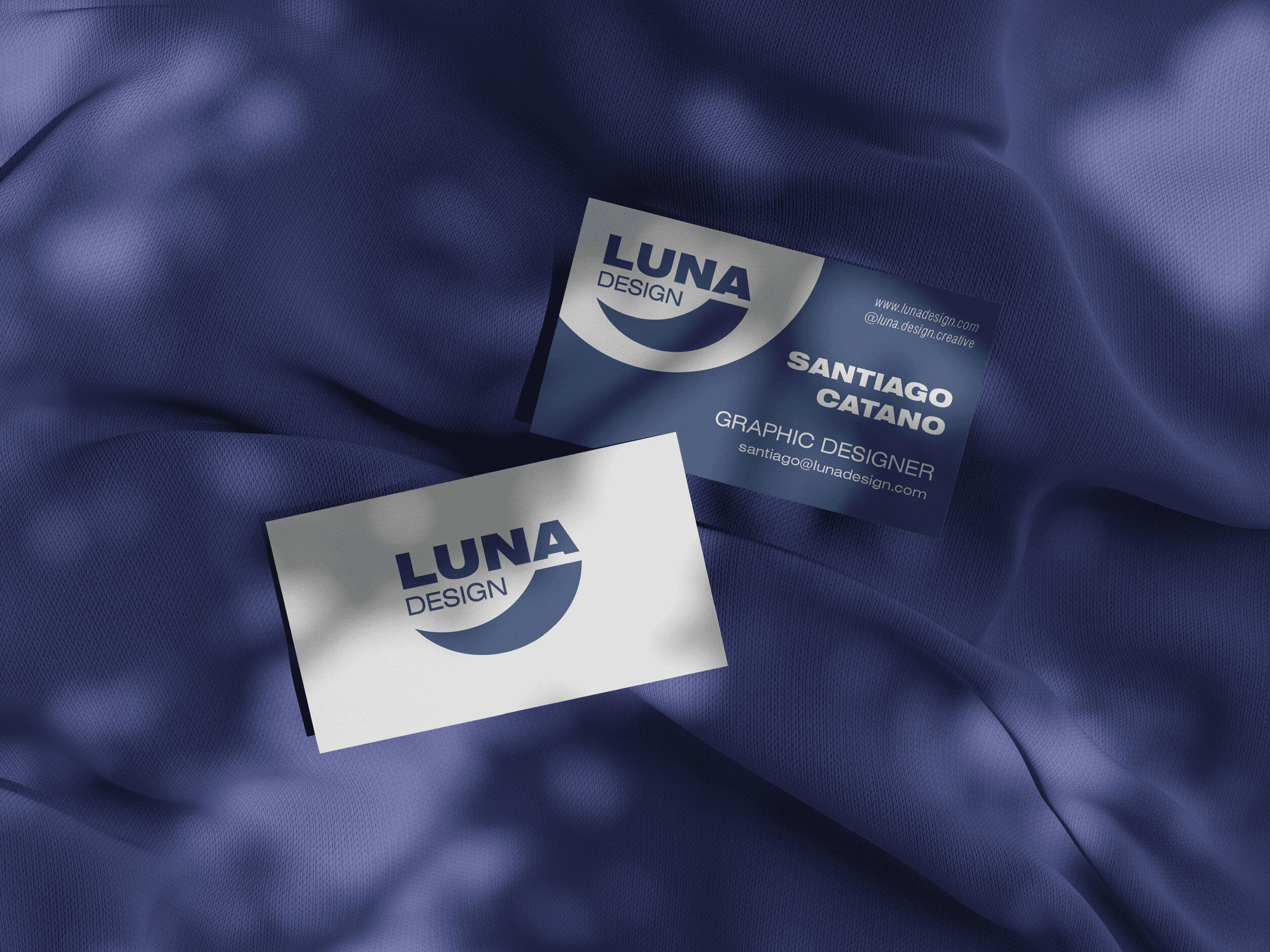 This branding project for Luna Design showcases my identity as a graphic designer through a cohesive visual system. It includes a custom logo and a professionally designed business card that reflects my clean, modern aesthetic. The logo features bold, geometric typography balanced with a crescent shape, symbolizing the moon and representing creativity and clarity. The business card integrates this visual style with a strong typographic hierarchy and a minimalist layout, communicating professionalism and approachability. A mockup presentation is also included to demonstrate how the design translates in a real-world context.